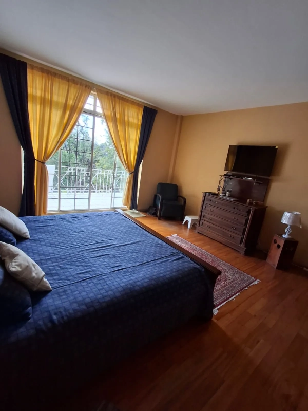 Dormitorio principal con chimenea, amplio balcón, tina de baño