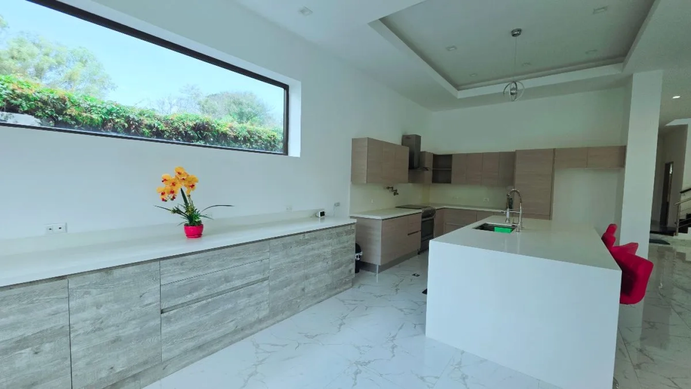 Cocina con top de cuarzzo, equipada con ambiente amplio